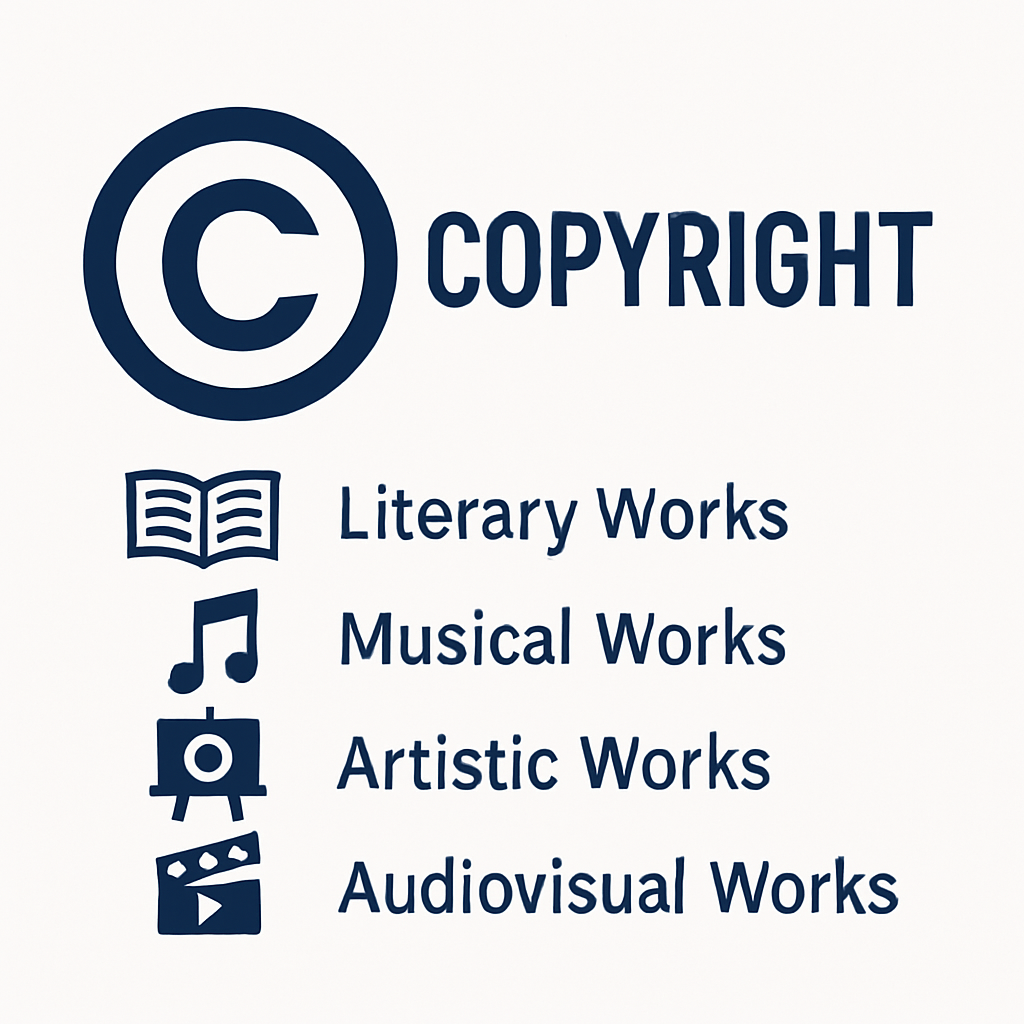 - Artistic Works - Protects visual art forms that express creativity through shapes, colors, or designs.